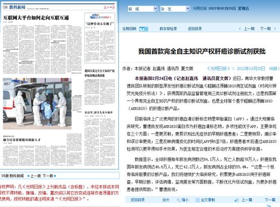 【光明日报】我国首款完全自主知识产权肝癌诊断试剂获批