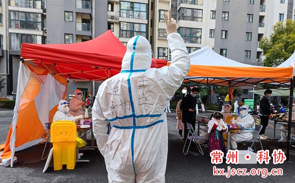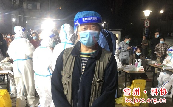 武进区科协副主席吴健奔忙在锦绣花园社区的核酸检测点和楼栋之间,挨家挨户通知居民进行核酸检测。