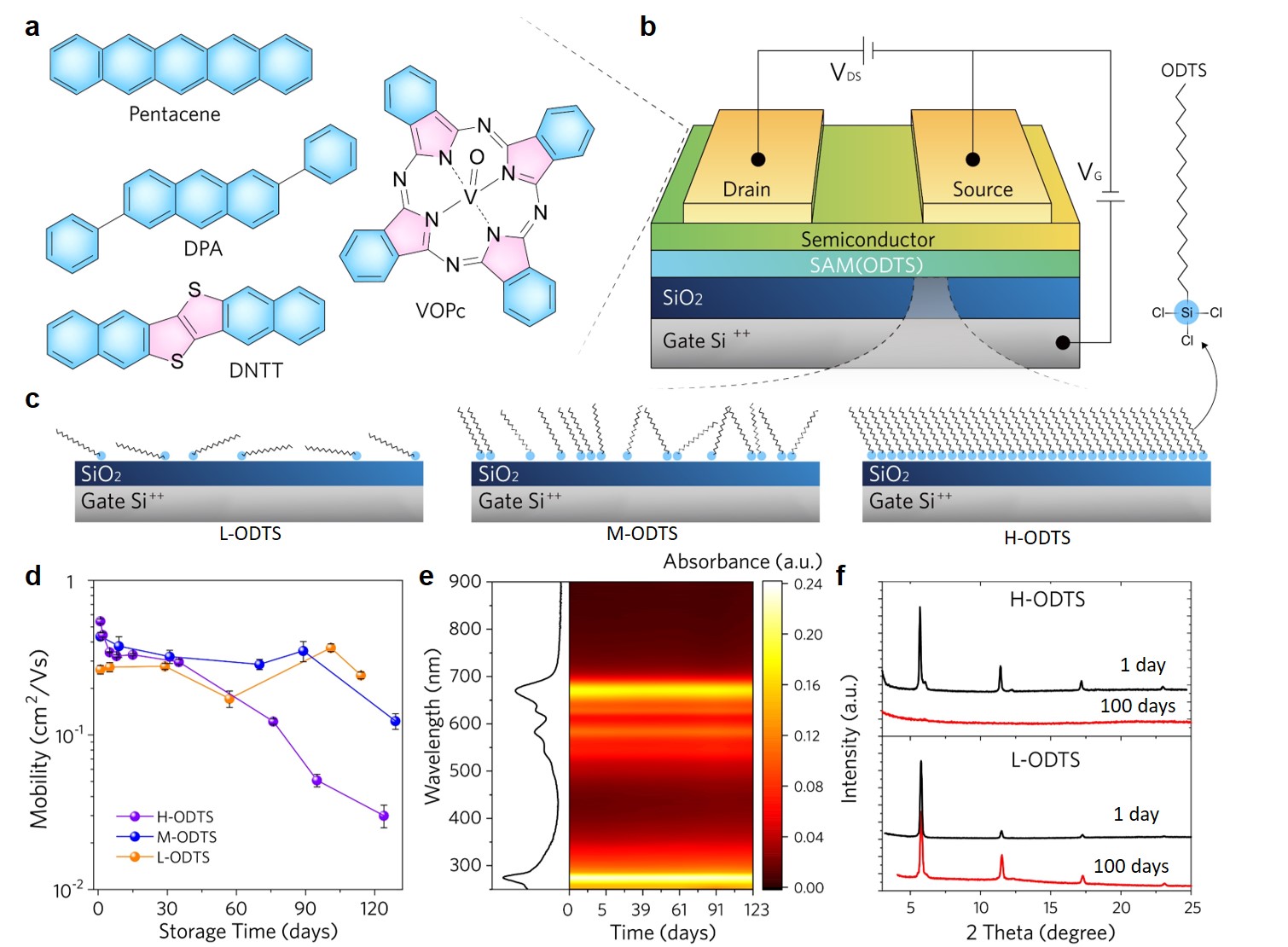 有机场效应晶体管(OFET)作为最重要的有机电子元器件之一, 在柔性显示、电子皮肤、可穿戴设备、智慧医疗、射频标签、柔性存储等领域具有广阔的应用前景。经过三十多年的发展,有机场效应晶体管的电学性能(迁移率等参数)与相关加工工艺等方面已取得巨大进步,但该领域仍未实现实用化,稳定性是制约实用化的关键瓶颈(“硬骨头”)问题,也是该领域被质疑是否有应用前景的关键问题。