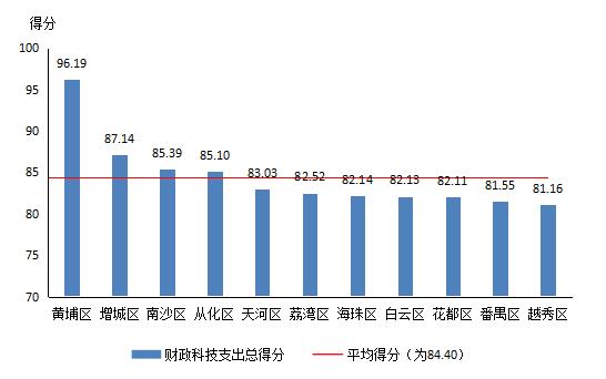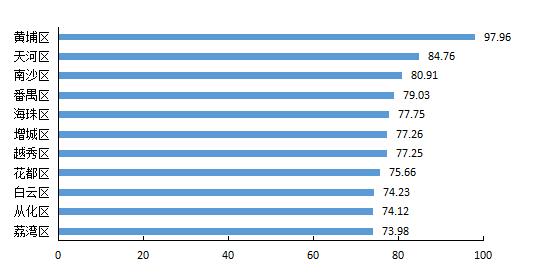 其中,黄埔区得分蝉联第一,为97.96分;天河区得分蝉联第二,为84.76分;南沙区后来居上,由上年的第五跃居第三,为80.91分。