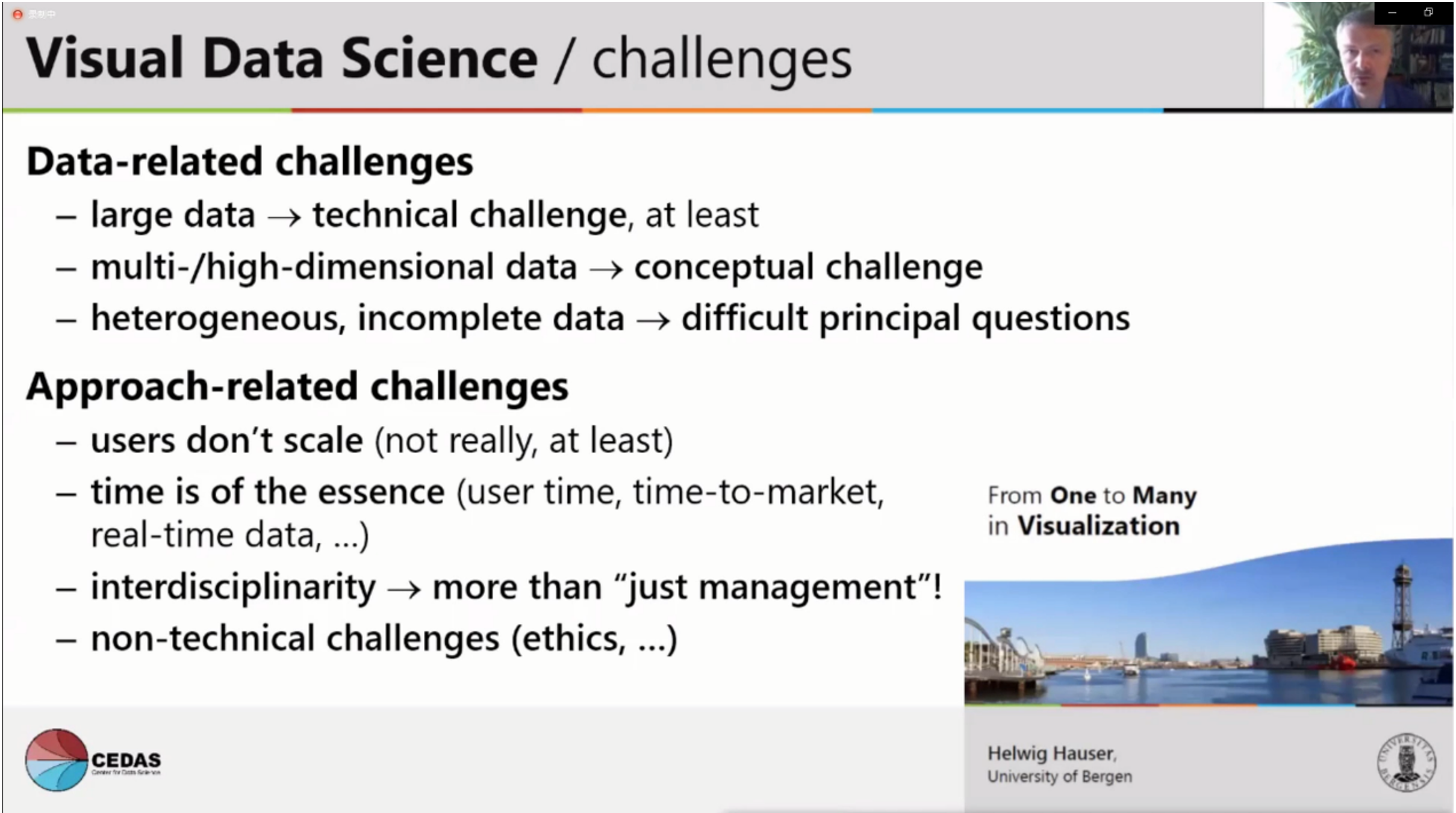 图3 Helwig Hauser教授报告:可视数据科学面临的挑战
