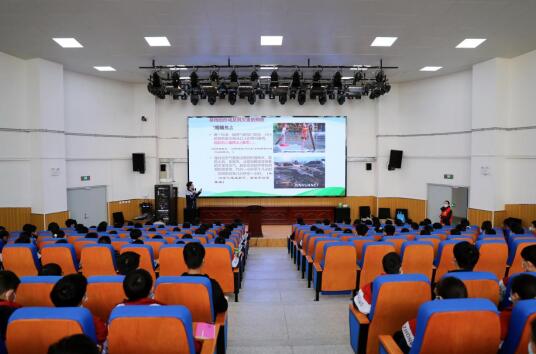 在学校报告厅,科普宣传员运用多媒体课件,图文并茂地讲解了襄阳本地的气候特征,以及暴雨、雷电、雾霾等恶劣天气产生的危害和防御措施,在增强气象知识储备和防灾减灾意识的同时,又提高了同学们的防灾避险能力。在现场有奖问答环节,大家热情高涨,积极举手参与互动。