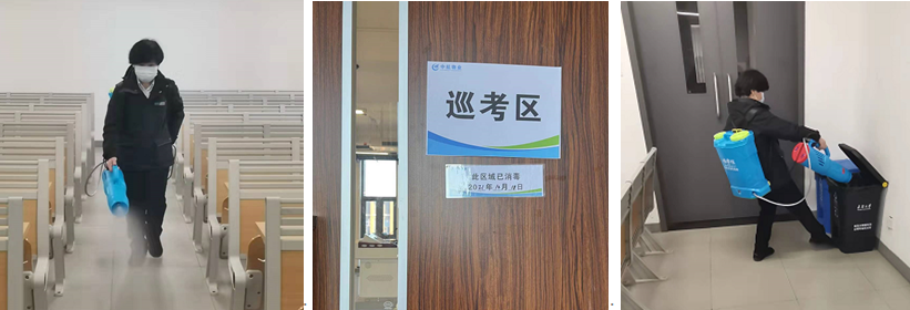 严阵以待,有条不紊。严阵以待,有条不紊。此次考试,科室和物业全力以赴做好现场保障工作。考试保障期间,物业管理人员和一线人员早上七点之前来到考试现场,加强室内消毒、通风,再次培训现场管控流程,检查备用隔离考场和考生信息查验场地准备情况。考试结束后,物业立即安排专人对公共区域、考试教室进行全面消毒和通风,全力做好疫情防控工作。