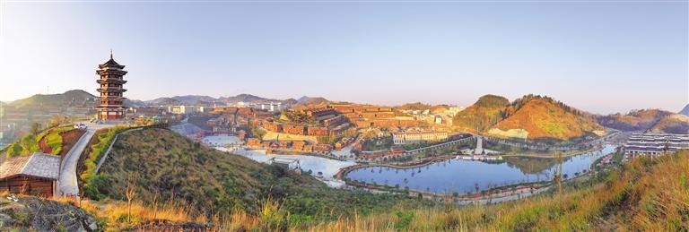 晴隆县阿妹戚托特色小镇是集搬迁安置和景区为一体打造的易地扶贫搬迁安置示范点,主要接纳来自贵州省20个极贫乡镇之一的三宝彝族乡少数民族贫困群众,开创了全国易地扶贫整乡搬迁的先河。 贵州日报天眼新闻记者 杜朋城 摄