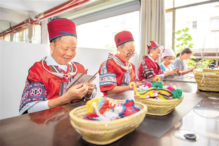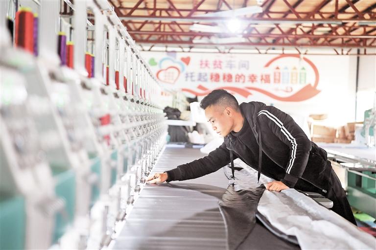 黔西市新仁乡化屋村村民在刺绣扶贫车间工作,托起稳稳的幸福。 贵州日报天眼新闻记者 张凯 摄