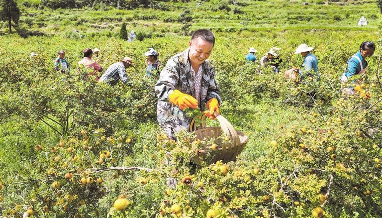 近年来,水城区高度重视生态建设,大力抓好产业结构调整,助推脱贫攻坚。图为种植户在采收刺梨。 聂康 摄 (贵州图片库发)