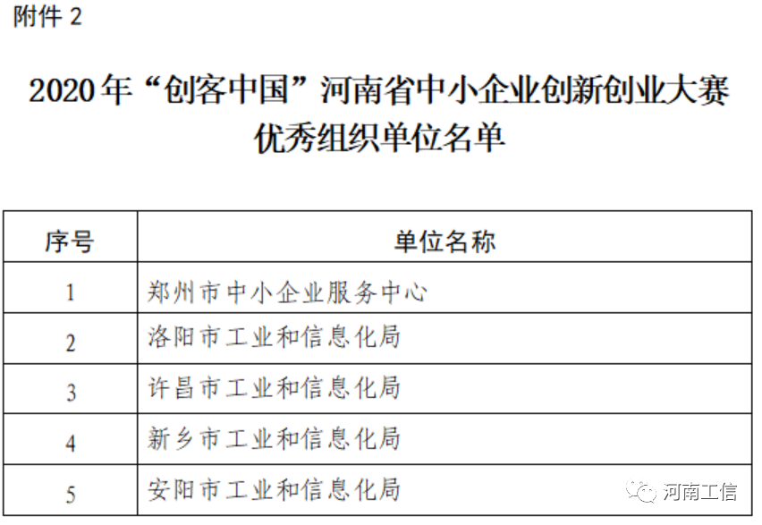 2.2020年“创客中国”河南省中小企业创新创业大赛优秀组织单位名单