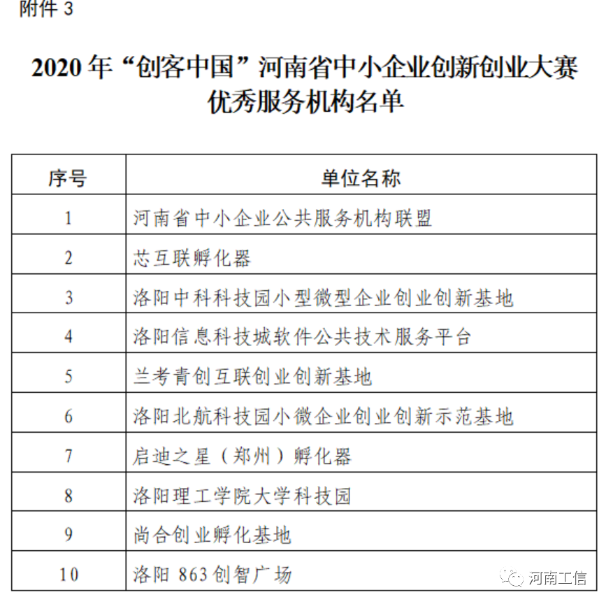 3.2020年“创客中国”河南省中小企业创新创业大赛优秀服务机构名单
