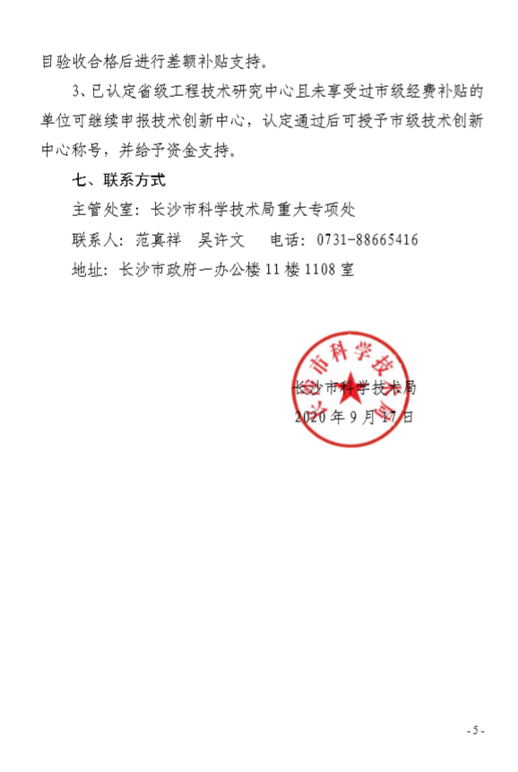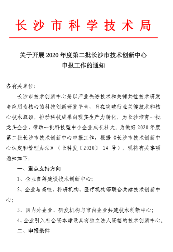 关于开展2020年第二批长沙市技术创新中心申报工作的通知