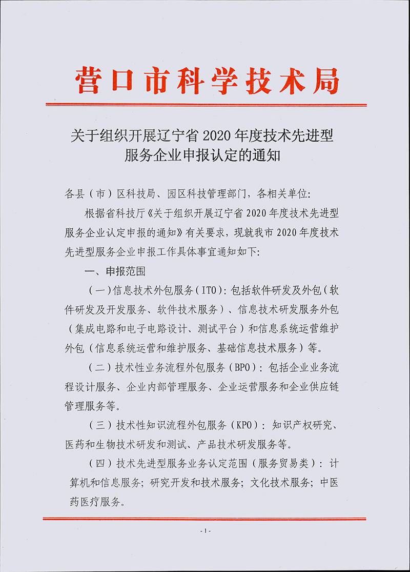关于组织开展辽宁省2020年度技术先进型服务企业申报认定的通知