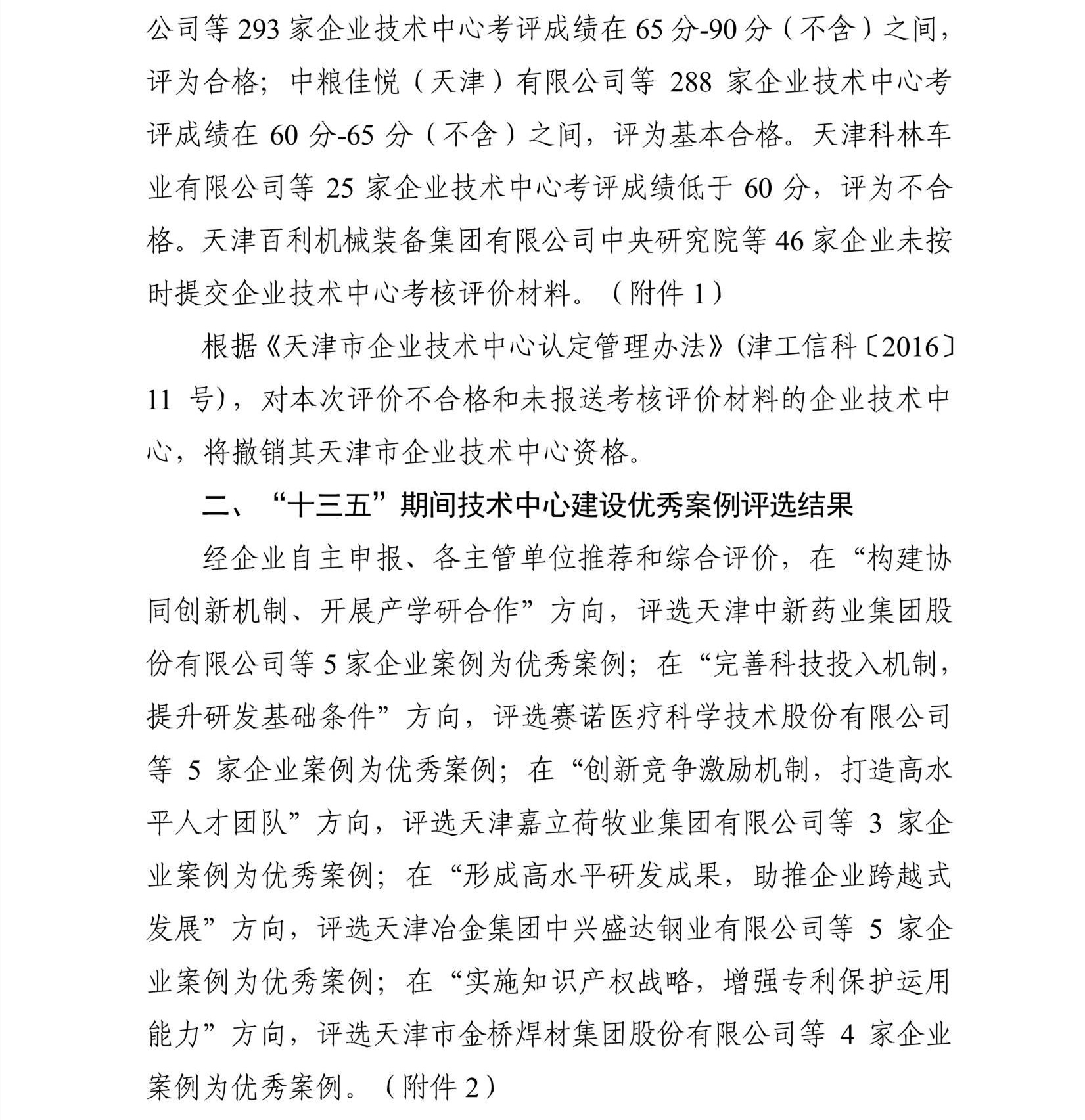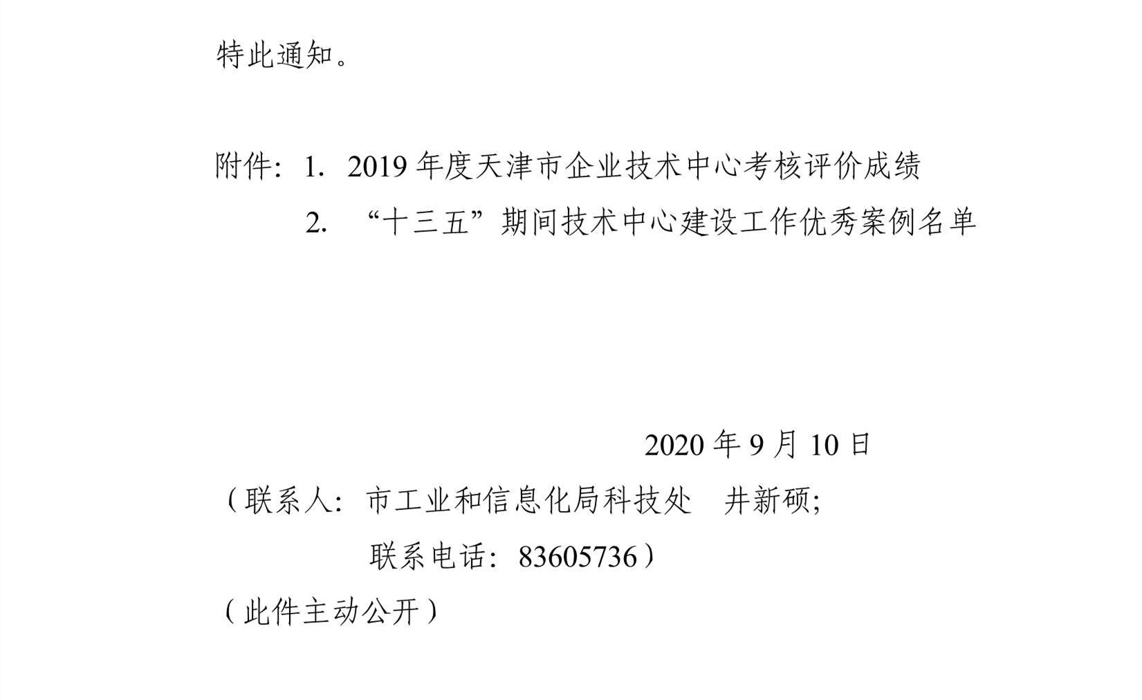 市工业和信息化局关于公布2019年度天津市企业技术中心考核评价结果及“十三五”技术中心建设优秀特色案例名单的通知