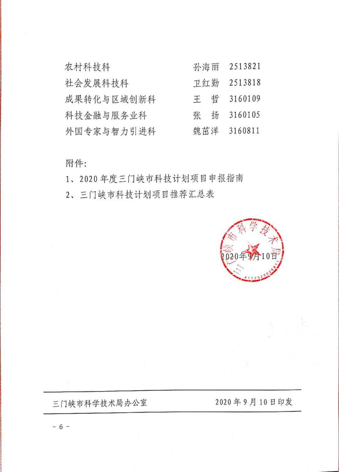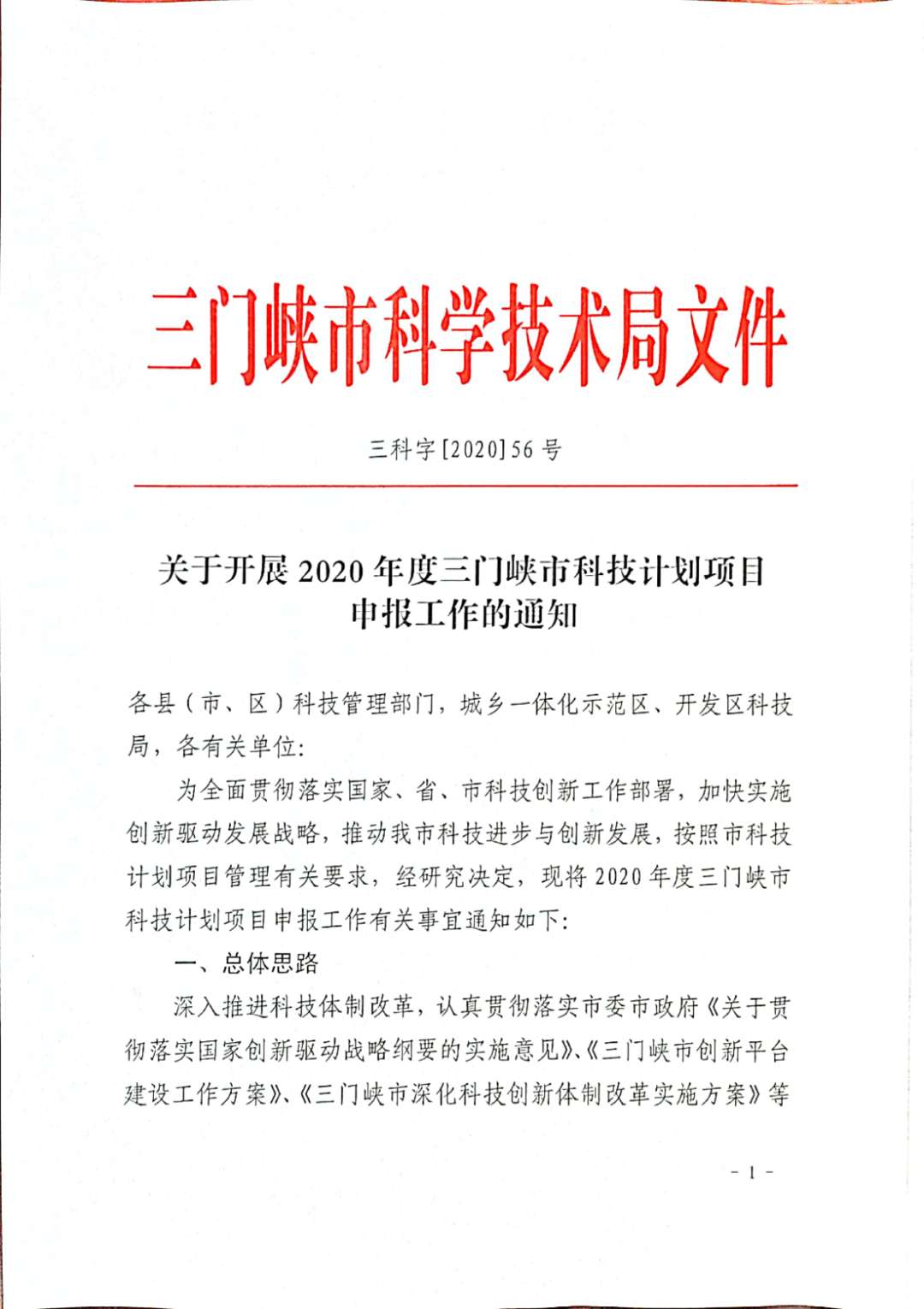 关于开展2020年度三门峡市科技计划项目申报工作的通知