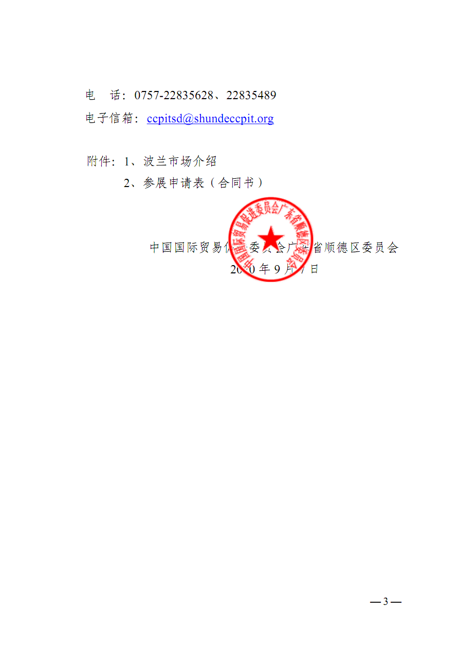 中国国际贸易促进委员会广东省顺德区委员会关于组织参加2020中国(波兰)国际贸易数字展览会的通知