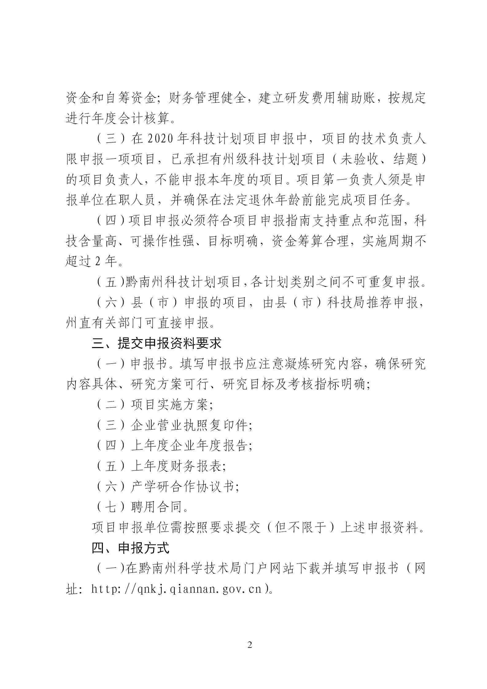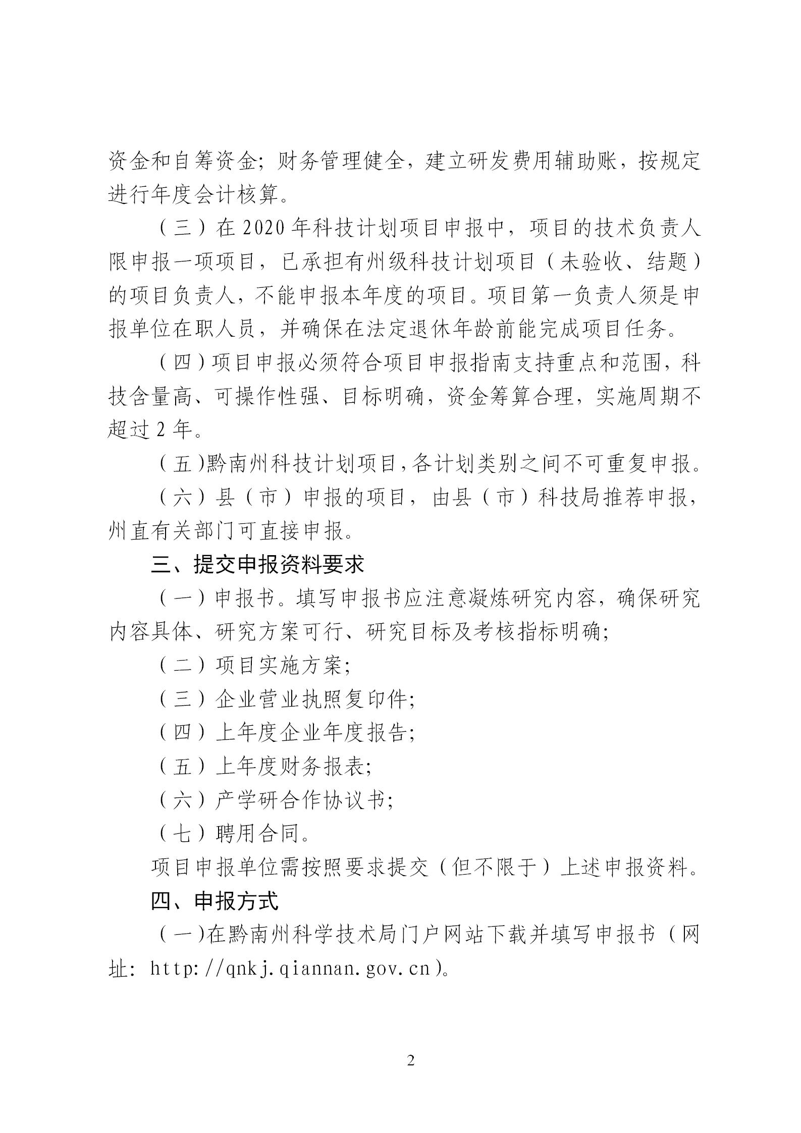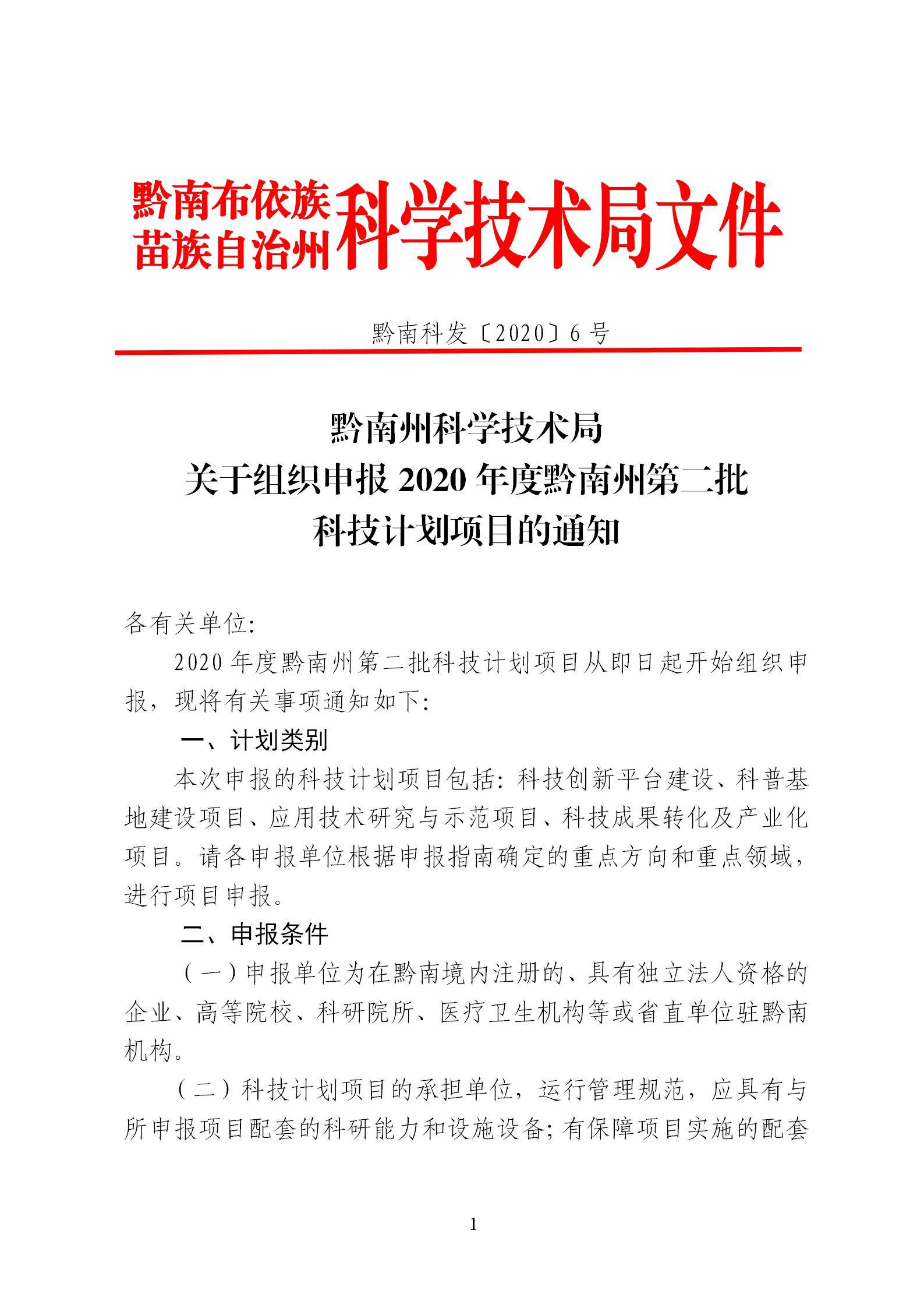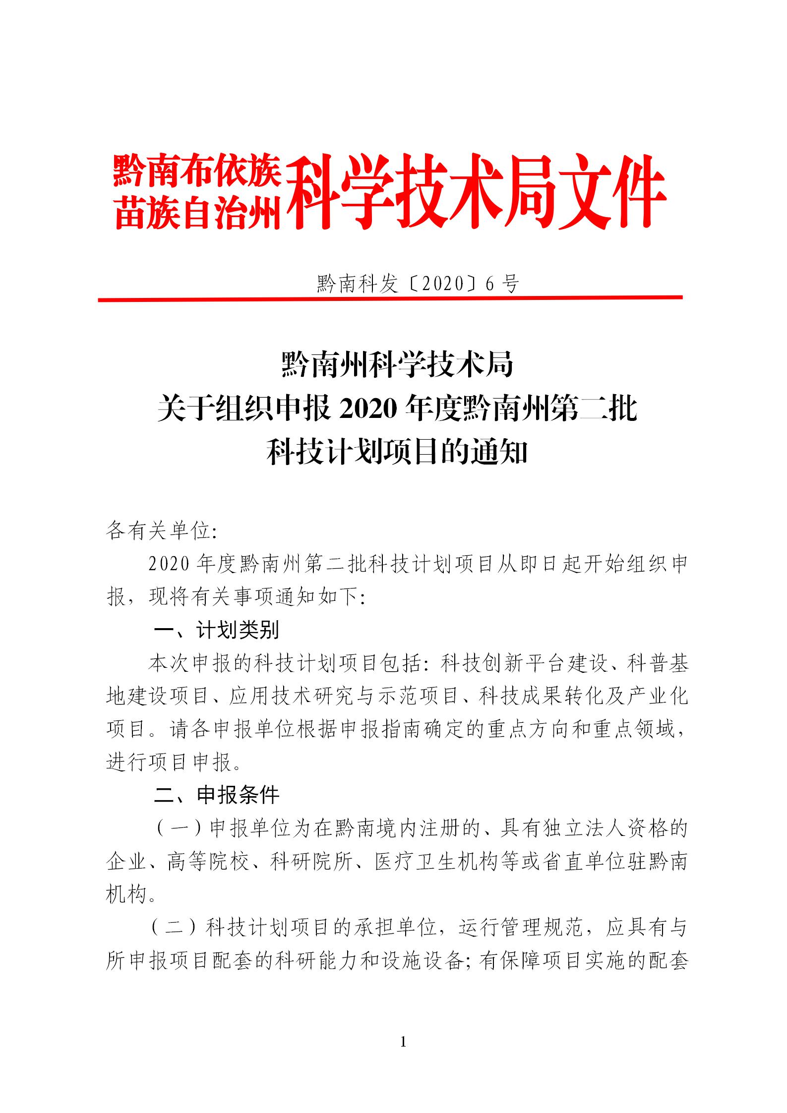关于组织申报2020年度黔南州第二批科技计划项目的通知