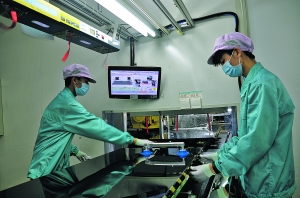 3月30日,在贵阳经开区企业贵阳海信电子有限公司生产车间的电视生产线上,一台台电视机经过面板定位、插线、检测等50余道工序后完成生产,打包后销往海内外。“以往车间都是单班生产,现在随着市场需求的扩大,特别是出口订单的增加,工人加班加点生产,日产电视近万台。”贵阳海信电子有限公司生产部副部长张淼说。