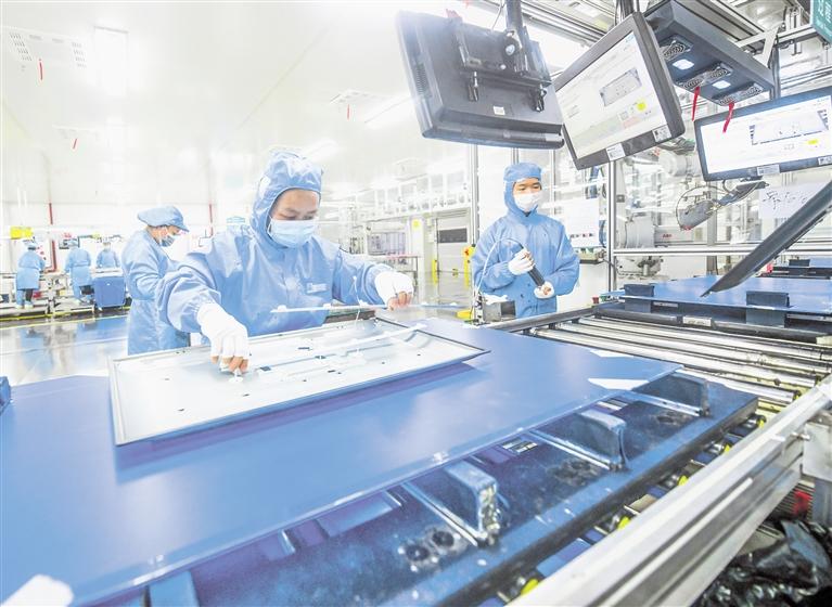 贵阳海信电子有限公司通过生产线的智能化改造,大力推进企业提质增效。图为工人在检验平板电视亮度显示情况。 贵州日报天眼新闻记者 杨涛 摄