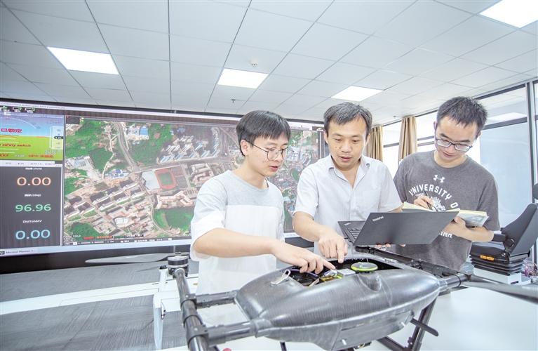 在贵阳市花溪区贵州大学西校区,省部共建公共大数据国家重点实验室无人机大数据研究室的科研人员正在检查设备。 贵州日报天眼新闻记者 盛亚亿 摄