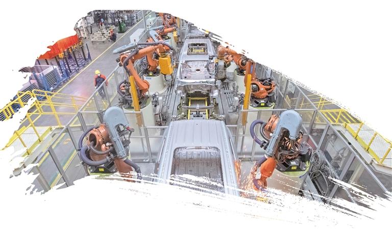 位于贵阳市观山湖区的吉利汽车贵阳制造基地内,全自动智能机器人正按拟定程序进行焊装作业。