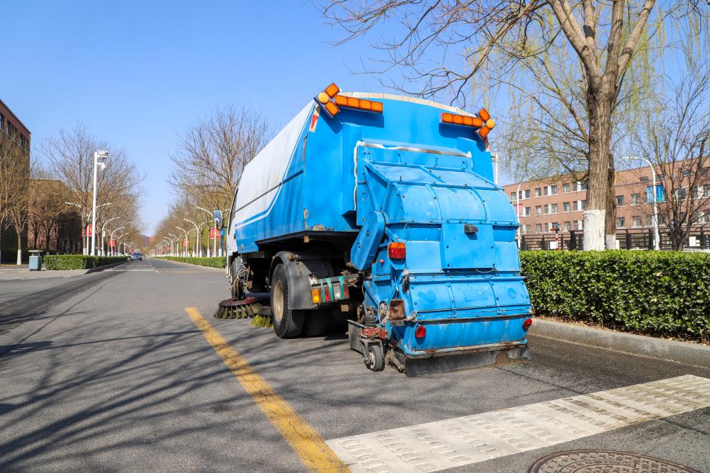 校园内的步道上,校园环境清洁人员也开始了道路清扫工作。吹扫机和马路清扫车等设备的使用,大大提高了清扫工作的效率。