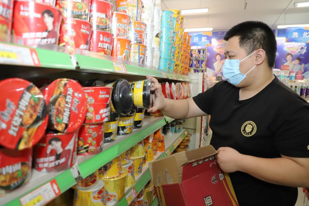 与食堂师傅们一样,北洋综合超市的小伙子们也按照规定住校服务。他们每天清理完卖场,货架补完货后,便搬出折叠床睡在超市的过道上。超市店员杨庆杰说他每天都会在休息时跟家里视频,为了服务学校,家人对他的工作也很理解,“现在网络视频这么发达,每天都能和家里进行视频通话,也挺好”。