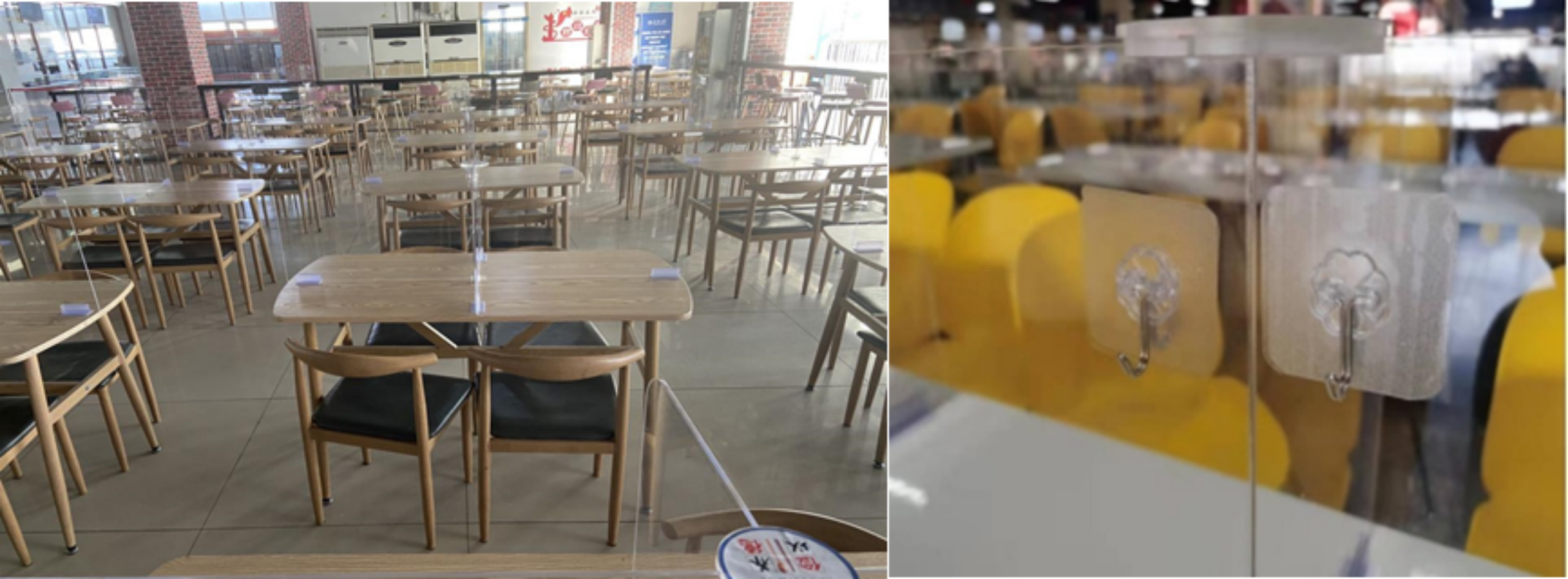 城市烟火气,最抚凡人心。中午,为了响应学校“错峰就餐,鼓励外带”的号召,李梦宜和她的舍友轮流担任“宿舍暖心送餐员”。拒绝了外卖的诱惑,食堂的菜式也依旧花样百出,门口的志愿者同学提醒大家“带好口罩,注意消毒”,叔叔阿姨亲切熟悉的招呼和热气腾腾的饭菜是一天中最容易触摸的幸福感。校内各食堂都放着透明亚克力餐桌隔板,并在隔板上粘贴了挂钩,方便堂食的师生悬挂口罩,让疫情防控之下,选择“一人餐”的同学吃的更加安心。