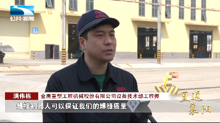 金鹰重型工程机械股份有限公司设备技术部工程师 满伟栋:“焊接机器人可以保证我们的焊缝质量,再一个就是可以降低我们的劳动强度。”