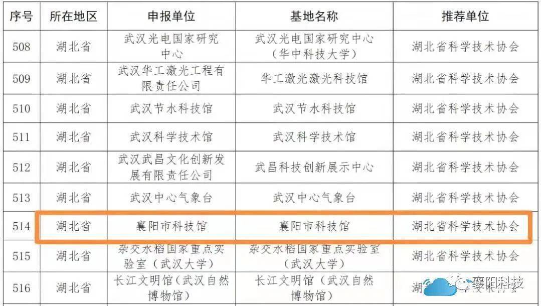 近日,中国科协办公厅公示了2021-2025年全国科普教育基地第一批认定名单,襄阳市科技馆成功入选全国科普教育基地。
