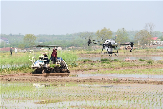 无人机、插秧机等上阵,科技助力春耕春种。钟仲华 摄
