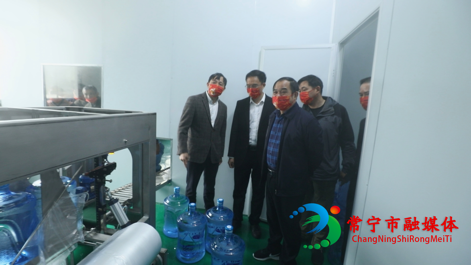 调研人员一行先后察看了厂房空桶库房、灌装间等地,现场感受制水到桶装的过程,并认真听取了技术人员关于设备运行、安全生产等情况的汇报。肖荣望指出,公司饮用水桶装水生产线已投入使用,后续要加紧投入瓶装水生产线;要积极落实疫情防控各项措施,维持好厂区内卫生、水质检测等工作,严把安全关。