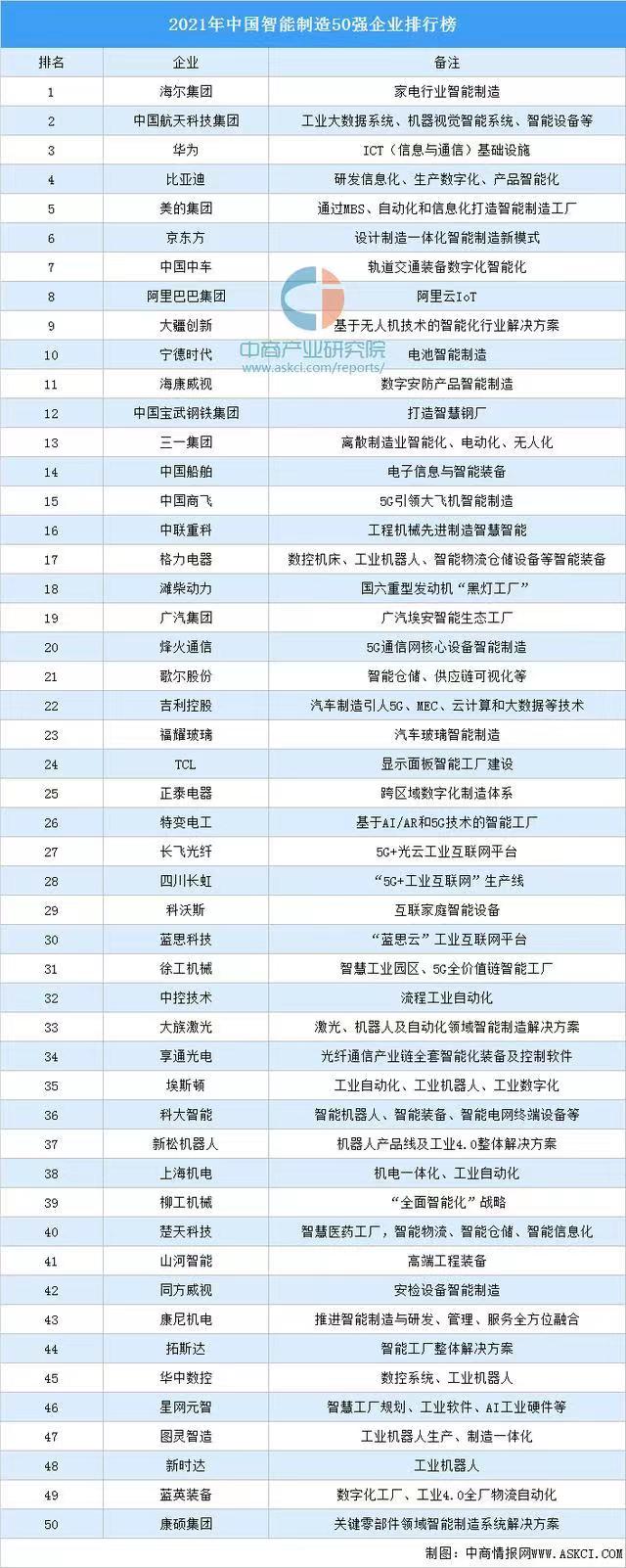 湖南“智造”有实力,5家湘企入选2021中国智能制造50强