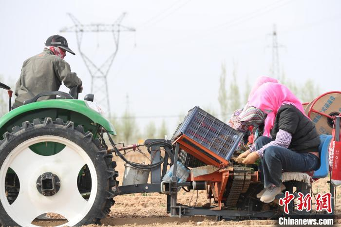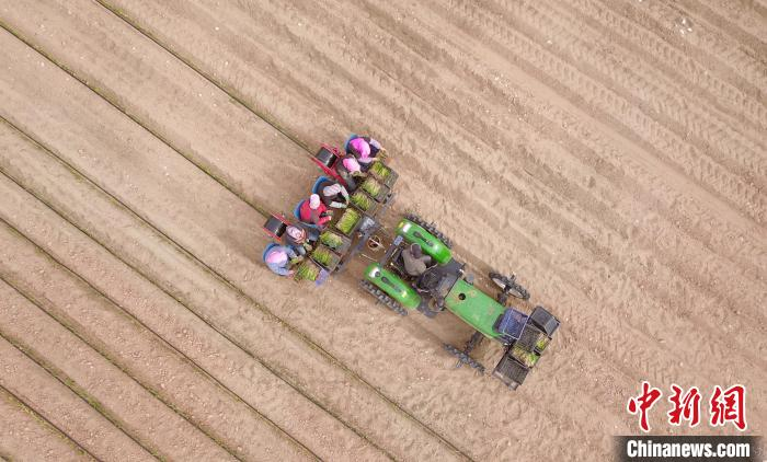 4月14日,在宁夏石嘴山市平罗县红崖子乡田地间,远远就能看到村民们躬身种植大葱的身影,耕田、种葱、搬运葱苗……处处呈现出一幅生机盎然的春耕景象。
