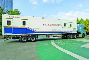 4月13日,移动方舱式核酸检测实验室运抵贵阳市第二人民医院(金阳医院)。(市二医供图)