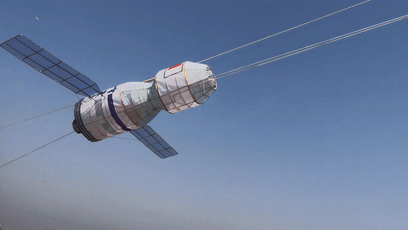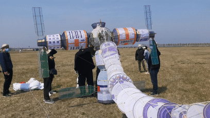 4月17日上午,潍坊国际风筝会综合服务中心在潍坊滨海国际放飞场成功放飞“中国空间站”主题风筝,庆贺宇航员归来。