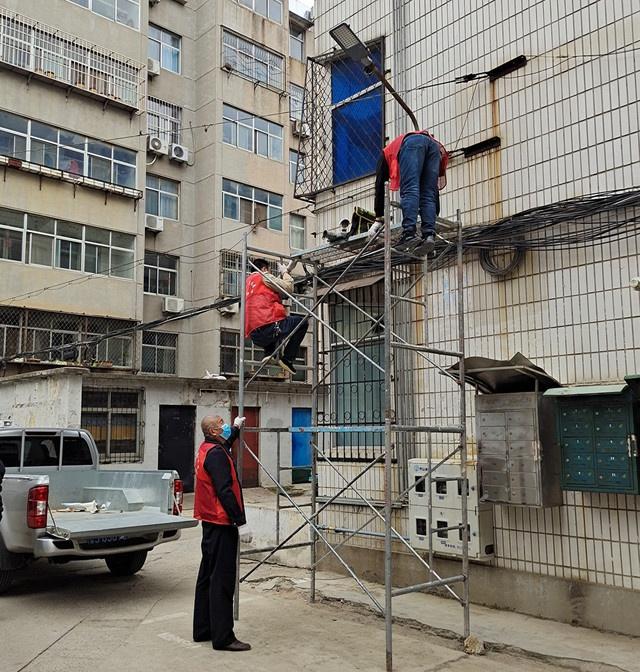 泰山区财源街道三里新村:整修路灯暖人心 照亮居民回家路