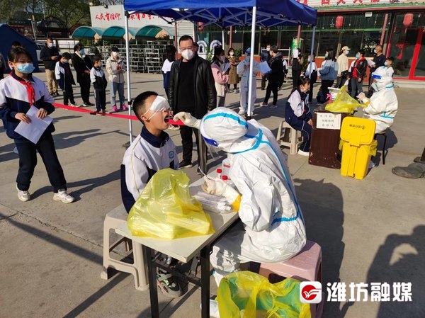 潍坊日报社潍坊融媒讯4月18日上午,潍城区各学校复课师生及家长轮流到相关部门指定的位置进行集中核酸检测。记者采访看到,潍坊口腔医院的医护人员正在潍城区月河社区内为辖区西园小学、潍坊外国语学校、潍城区月河路小学等多所学校的师生、家长进行核酸检测。