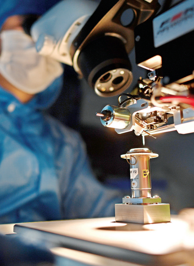 武汉高德红外高芯科技芯片生产线上,员工在进行精密加工。长江日报记者周超 摄