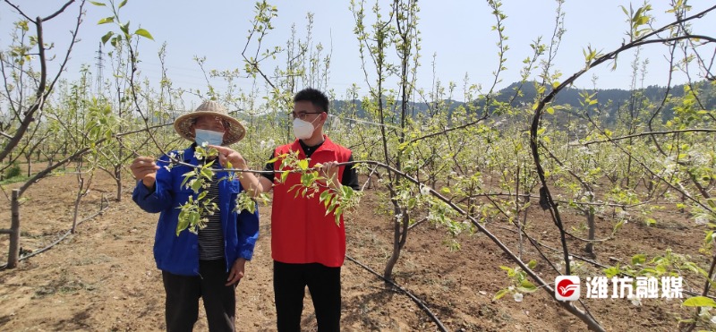 潍坊日报社潍坊融媒讯 今年以来,青州市聚焦乡村产业振兴,深入实施“科技+人才+项目”工程,大力推动农技人才深入农业龙头企业,传技术、解难题、提产量、促销售,助力特色产业发展。图为青州市庙子镇农技工作人员(右)到玉秀农业有限公司果树种植基地开展香酥梨种植技术指导。