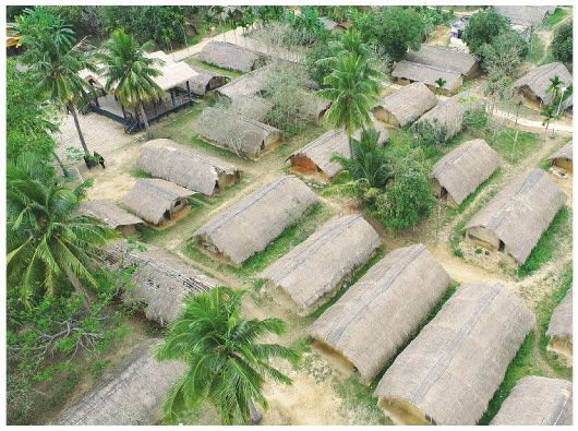 在海南,像初保村一样保持原貌的黎族传统村落,还有位于东方市江边乡的白查村,这里地势平坦,80多间茅草房整齐排列,颇成阵势。