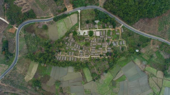 空中俯瞰东方市白查村船型屋部分村貌。新华每日电讯记者黎多江摄
