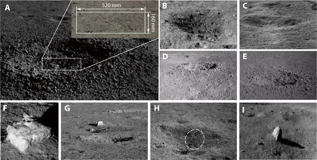 “玉兔二号”观测发现的撞击坑及岩石