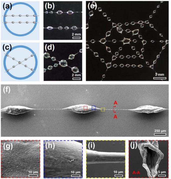 近日,国际化学领域期刊《材料化学学报》A刊(Journal of Materials Chemistry A)报道了西南交通大学孟涛教授团队的研究成果——具有中空连续通道的仿蜘蛛丝微纤维用于高效集水,团队通过在仿蛛丝纤维内部构建中空结构,让纤维的集水性得到显著提升,该仿生微纤维悬挂液滴体积是纺锤节体积的1663倍,远高于目前世界上最高吸水能力的报道(571倍)。