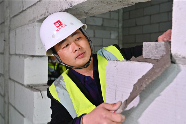 2004年,高海建入职江苏佰拓建设有限公司做砌筑工。砌筑工俗称“瓦工”。但真正要当瓦工,得从小工做起。勤奋好学的高海建,仅用2个月就从小工当上了瓦工。那时,他整天都在琢磨着老师傅砌墙,“水平线要怎么拉”“砖块的水平缝要多厚”等基本功了然于心,活干得既快又好,力求做到“零误差”。