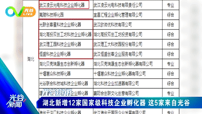 湖北新增12家国家级科技企业孵化器,这5家来自光谷