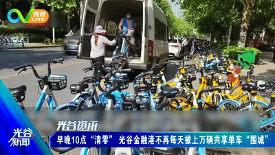 光谷城管部门与哈啰等3家单车企业联手治乱,推出“双十清零”行动。即上午10时以后,园区机动车道和路口单车清零,保障园区道路畅通,晚上10时以后,园区所有共享单车清零,为第二天市民停车腾出足够空间。下一步,光谷将继续联合企业,引导市民文明骑行有序停放,通过引进市容网格员、加装电子围栏等方式,加强对金融港等园区共享单车的精细化管理。