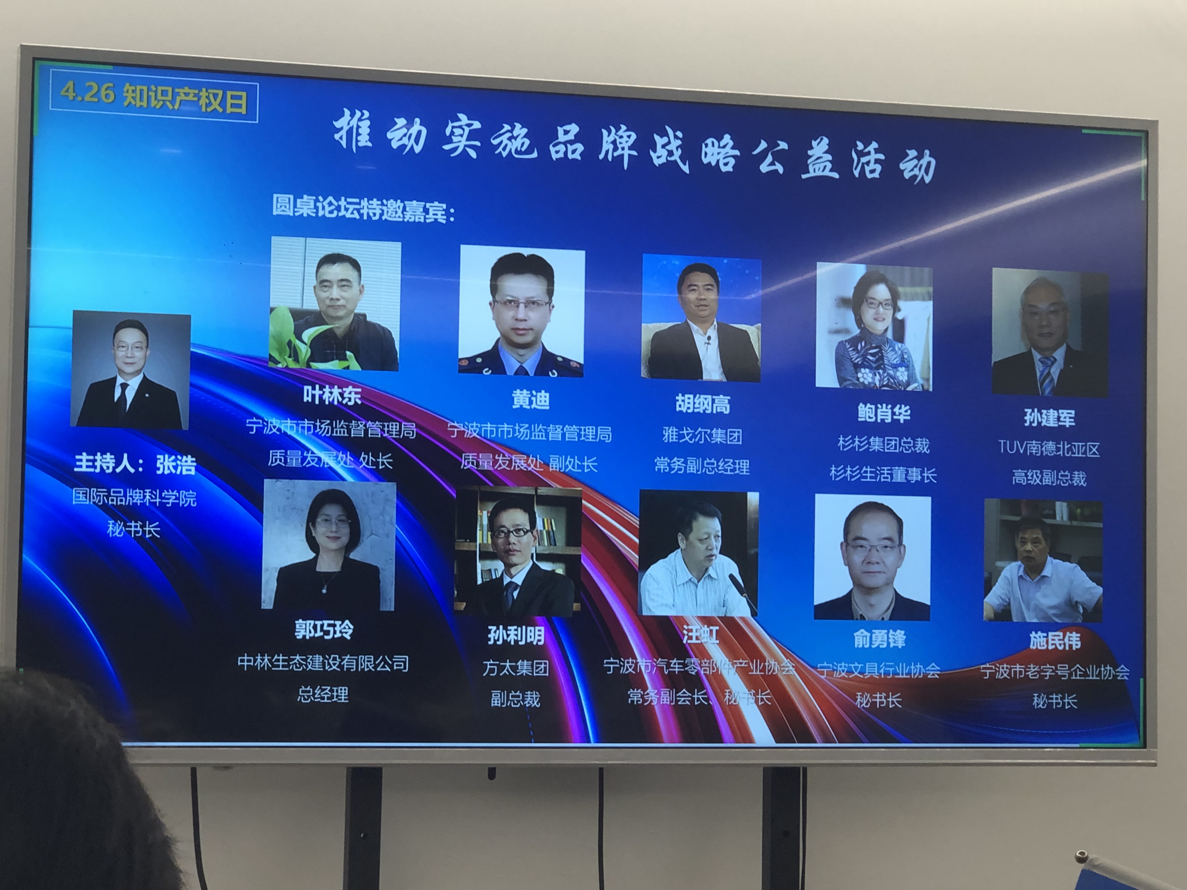 市市场监督管理局质量发展处处长叶林东、副处长黄迪出席会议,特邀雅戈尔集团常务副总经理胡纲高、杉杉集团总裁兼杉杉生活董事长鲍肖华、TUV南德北亚区高级副总裁孙建军、中林生态建设有限公司总经理郭巧玲、方太集团副总裁孙利明、市汽车零部件产业协会常务副会长兼秘书长汪虹和市老字号企业协会秘书长施民伟等嘉宾共同出席,活动由国际品牌科学院秘书长张浩主持。