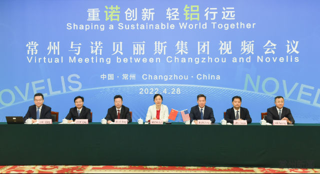 继去年底我市首次在线上开展“云招商”以来,“云联五洲”已成为常州新的招商品牌。4月28日上午,市长盛蕾以视频连线方式,与诺贝丽斯集团总裁、首席执行官史蒂夫·费舍举行会谈,在“线上”共商合作,借“云端”共谋发展。
