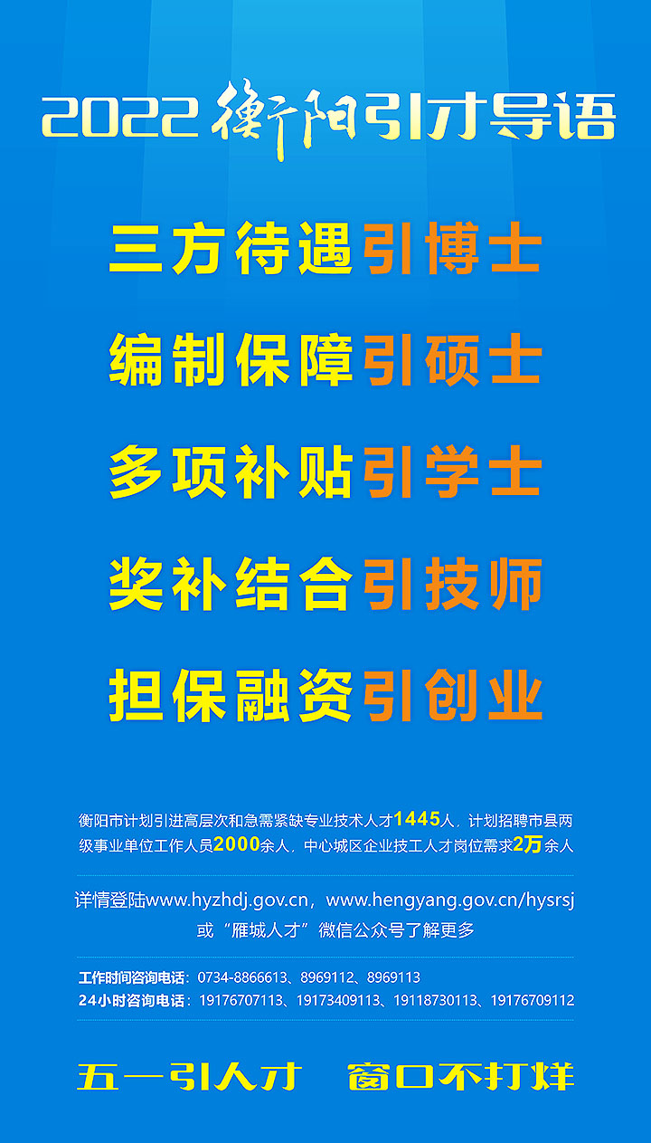 165家单位,共招1445人!衡阳发布2022年度人才引进需求目录