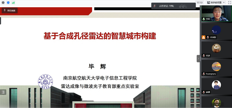 毕辉教授以“基于合成孔径雷达的智慧城市构建”为主题,介绍了合成孔径雷达在智慧城市构建中的应用现状和前景,并详细分享了其课题组在该研究领域的最新进展和突破。毕辉教授详细介绍了如何利用合成孔径雷达(SAR)高效获取城市及其周边区域的高精度2.5D(数字高程)、3D(散射结构)、4D(形变)信息,从而使得SAR系统在城市大范围、高精度安全监测等应用中起到关键作用。同时,毕辉教授还同与会教师和学生开展了深入交流,就SAR体制,SAR数据处理,形变测量精度等问题开展了深入的讨论。本次学术报告不但为我校电子信息工程学院营造了良好的学术氛围,也为疫情环境下的不同学科间建立了良好的连接纽带。