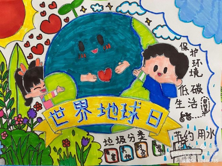 学生们通过制作手抄报来表达自己珍惜地球,保护家园的愿望。