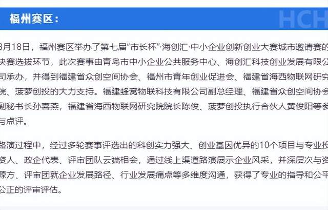 除此之外,三创中心的“睿雅智能”智慧物联网解决方案也为区域产业生态带来产业智慧赋能服务链。借助“睿雅智能”、海创汇云平台等项目,三创中心将大企业共创平台的数字科技引入福州区域,实现区域创企数字科技的加持,助推企业数字化转型进程。2021年中旬,三创中心也在此基础上聚焦数字科技等赛道开启了“海创汇三创大赛·福建站”,为上百家企业提供了成果展示、产业对接的舞台。